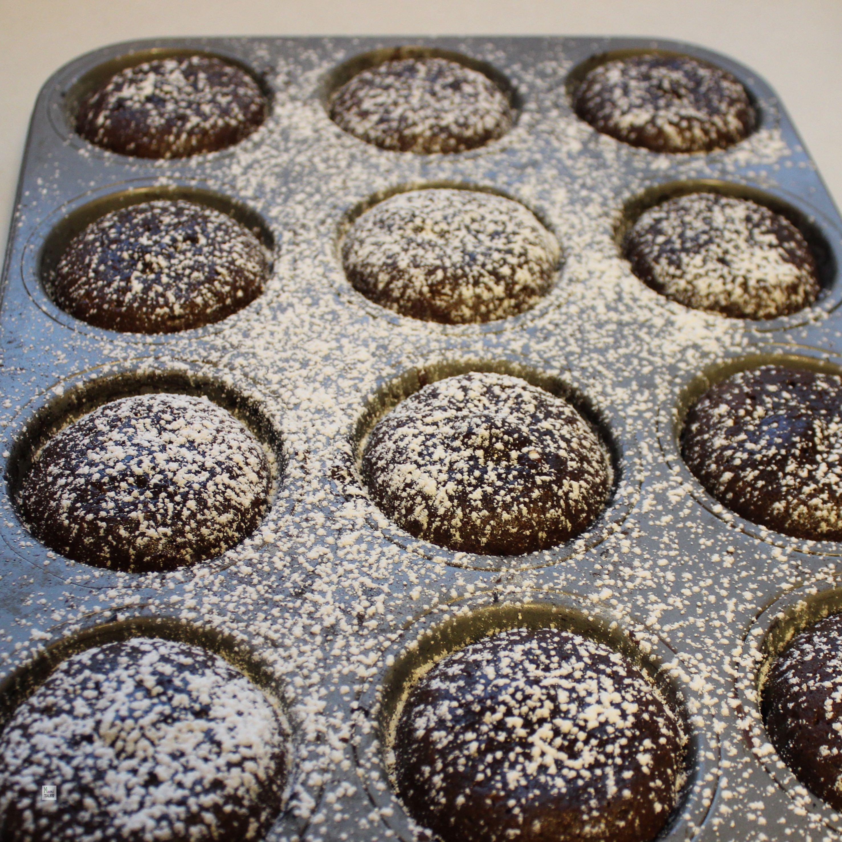 - Place in the oven for 7 to 8 minutes and take out. The centers will be gooey. Let them cool in a wire rack for about 10 minutes before unmolding. I used a tablespoon to take mine out of the pan, and they hold well.